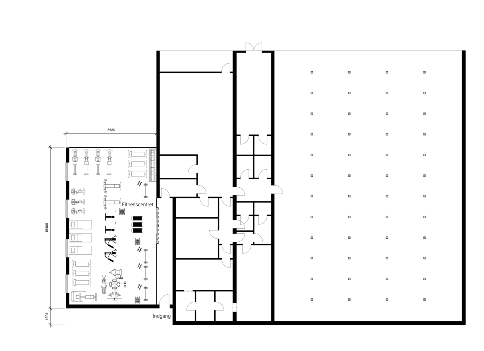 Viser bygningens indretning set oppefra, som rumfordeling, vægge, døre, vinduer, trapper, køkken etc.